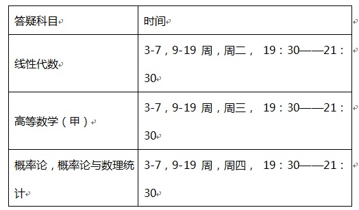 为了进一步提高我校公共基础数学课程教学质量,有效加强师生间课后的沟通与交流,及时解决学生在学习过程中遇到的困难和问题,学校决定2018春继续开展公共基础数学课程辅导答疑工作,由理学院基础数学教学中心组织实施。现将有关事宜通知如下: