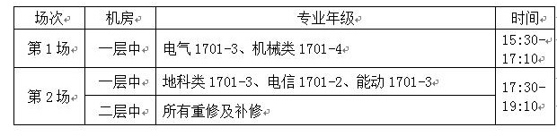 5、所有重修及补修学生(含2018届预毕业生)17:30-19:10在二层中参加考试。